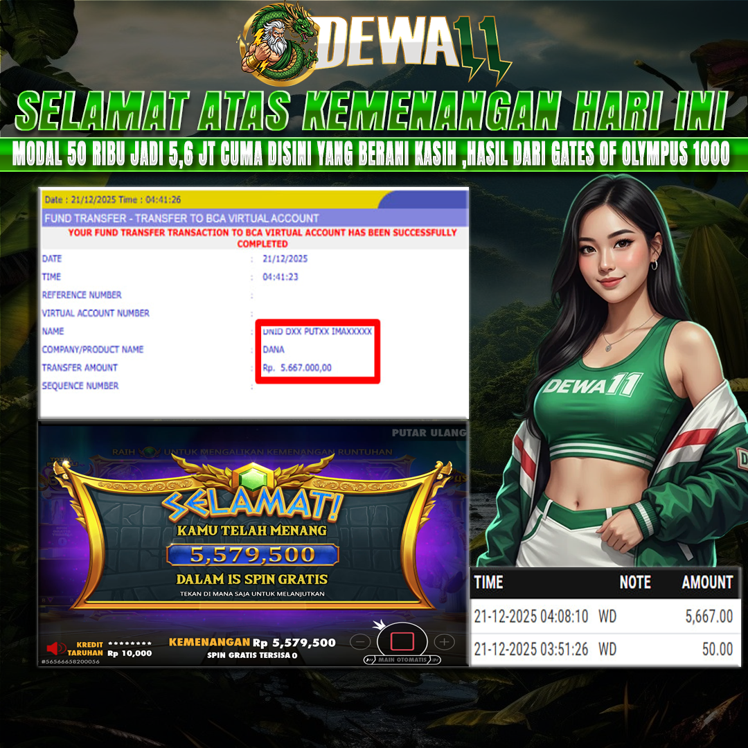 Gabung bersama DEWA11 dan Dapatkan kesempatan jackpot sensasional dalam 15 menit separate bukti banner ini bukan sekedar janji hanya Depo 50k Withdraw 5,6 juta hari ini.